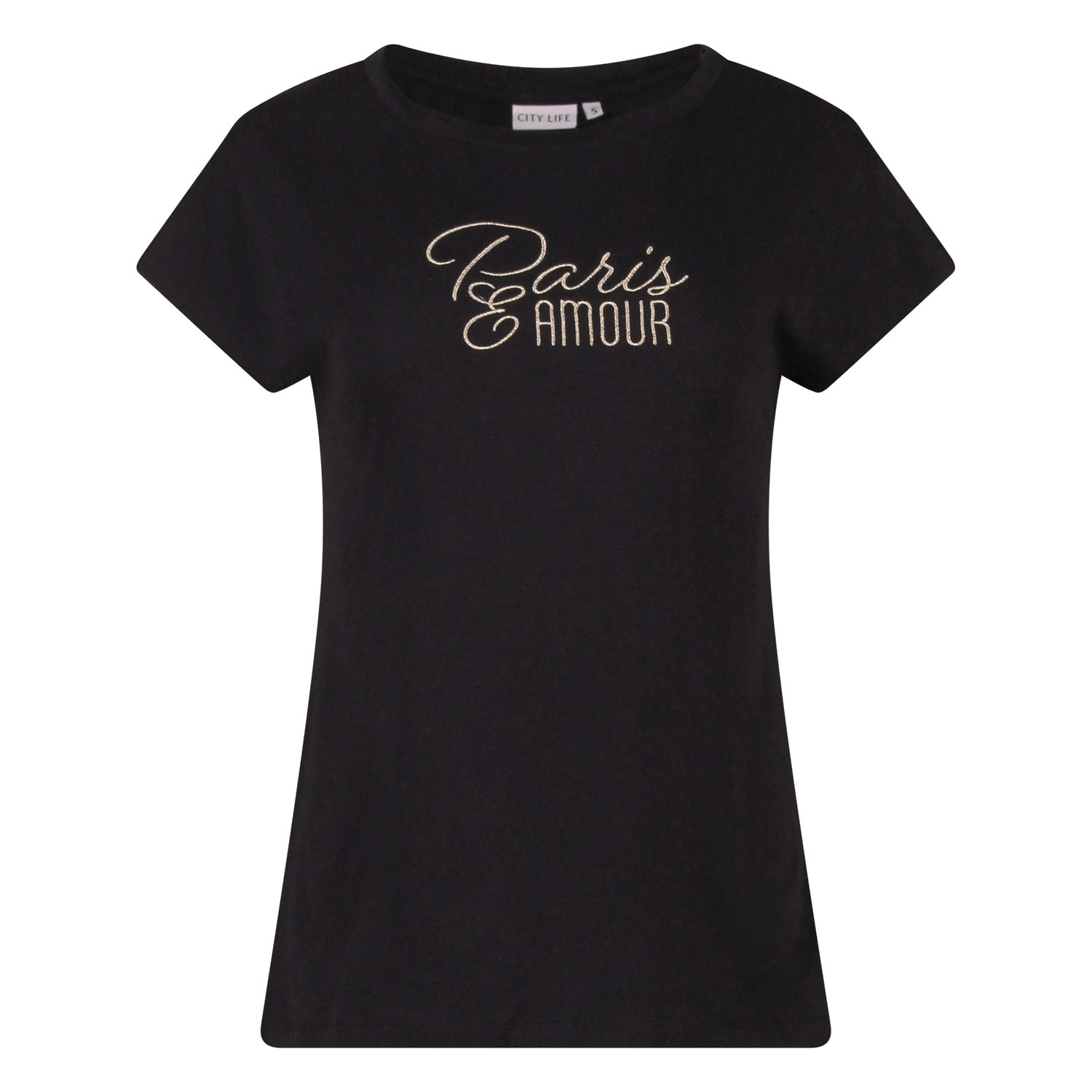 City Life 214254 Z10701 dames T-shirt km Zwart