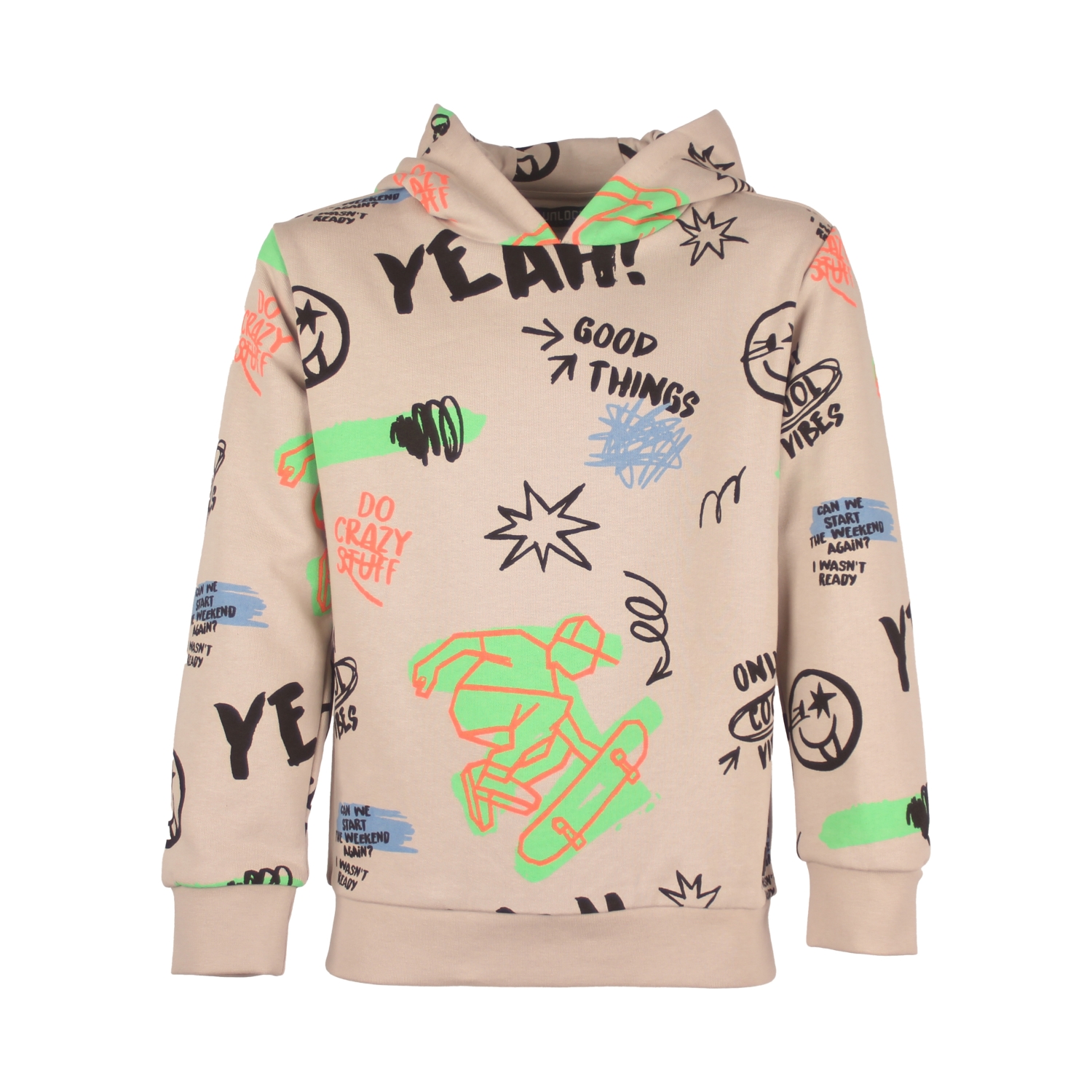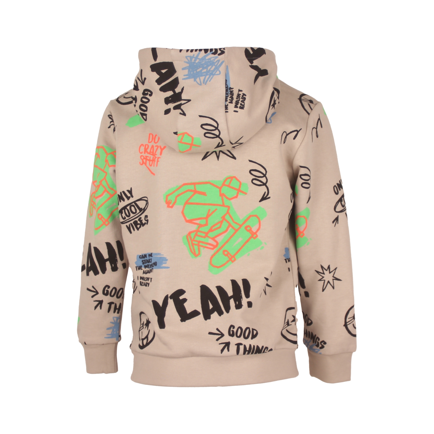 katoen/polyester sweat (85%/15%) hoody met funny skate allover print. Iets oversized fit